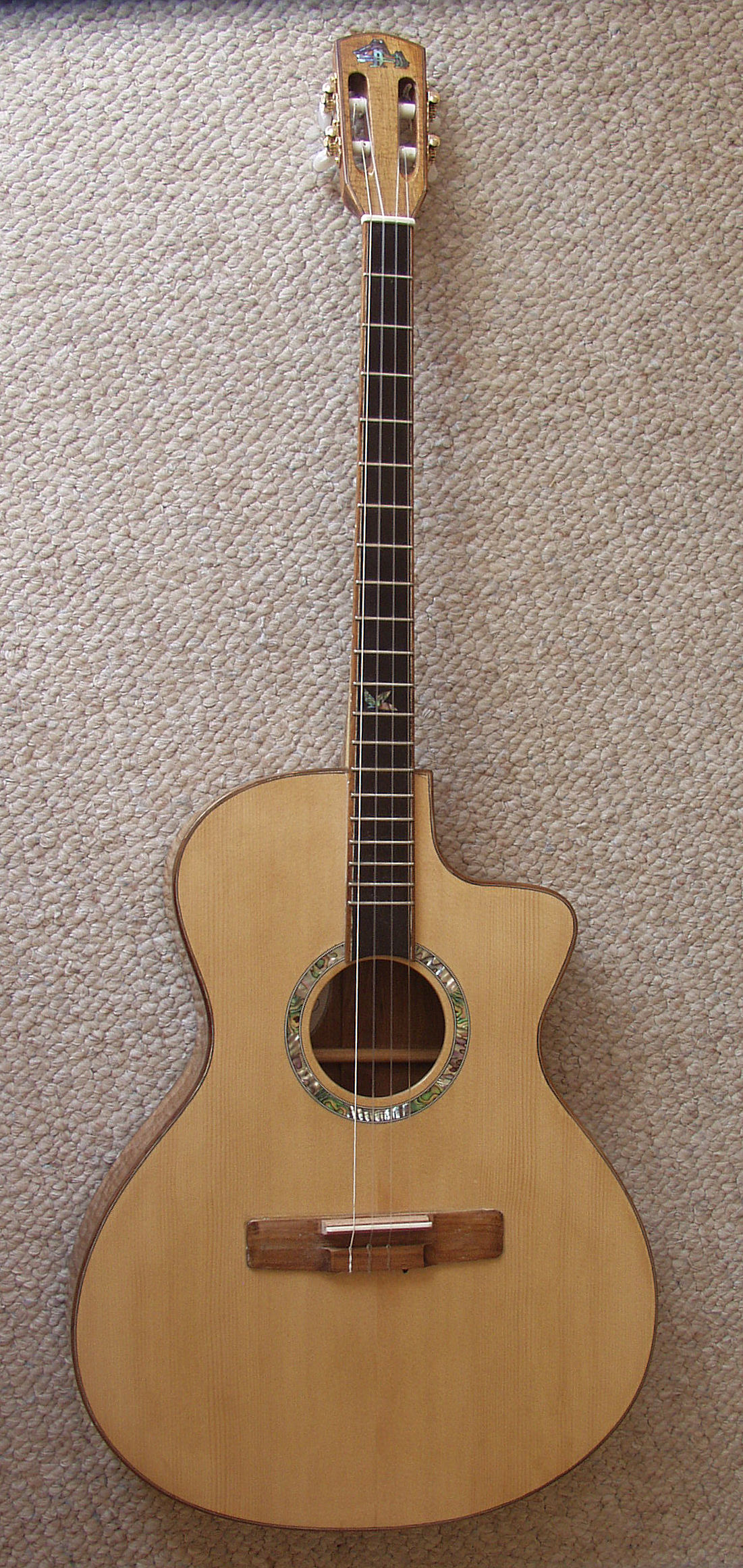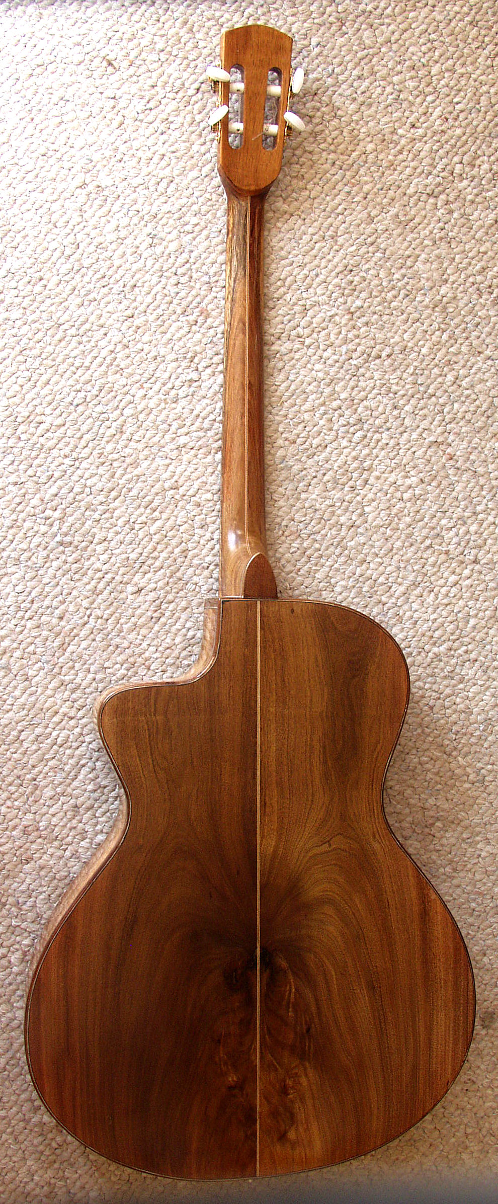 - Slotted peghead with Koa peghead overlay and nylon-string tuners.
